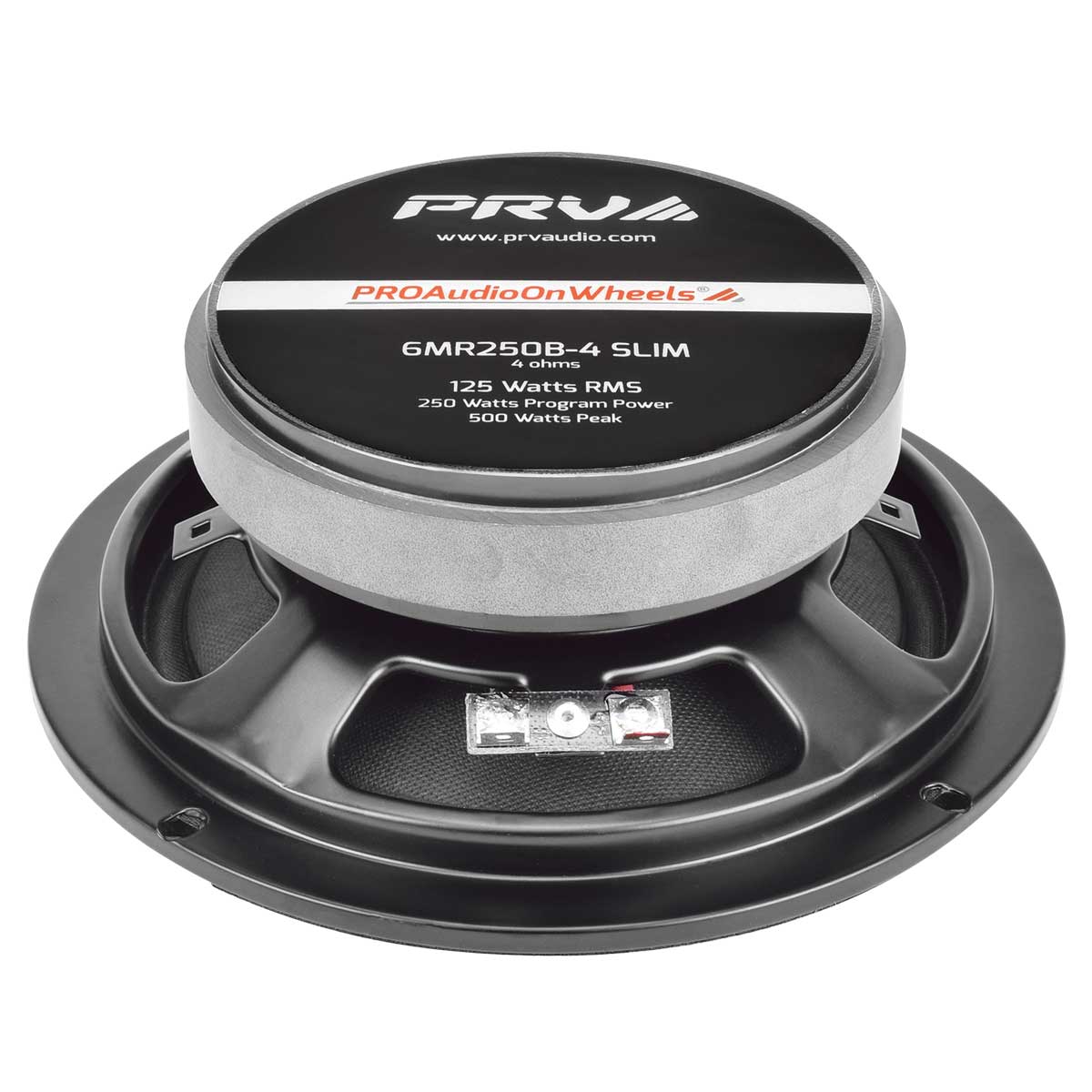 The MR SLIM series was designed as PRO Audio On Wheels solution for shallow doors, featuring an Aluminum Phase Plug (Bullet). This mid is built like a professional mid range loudspeaker, but it has been designed for use in the mobile audio market.