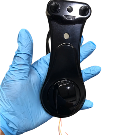 This Billet Air Ride Set-up is designed to mount on the horn stud of Harley Davidson Touring and Softail models. It is delivered with 30 inches of wire for easy installation. We do offer special orders on switches which may include or replace with a center stand switch, etc.