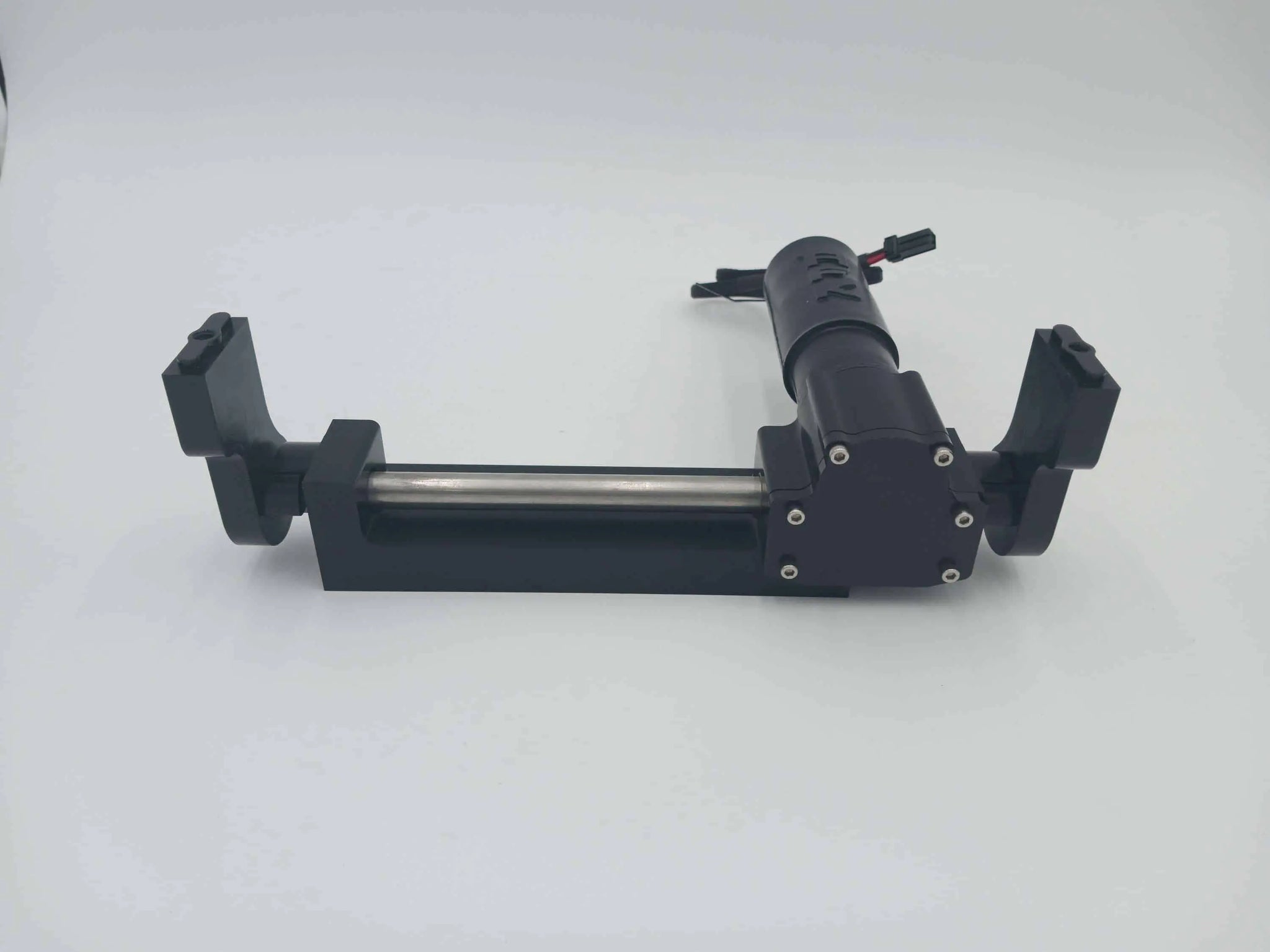 This model electric center stand was developed for the standard model softails like the Heritage and Deluxe from 2000 to 2017 that are running outboard shocks/air ride. If you are running factory location air ride this stand isn’t for you! You will need our outboard mounting Gen2 center stand. This stand mounts to the rear cross bar towards the rear of the frame and is hidden for the most part. It comes with all neccessary mounting hardware, plug-and-play harness ( optional switch mount) and stackable shoes to set correct height. You will need to drill two 3/8″ holes in crossmember to mount stand. Stand comes in black anodize finish only.