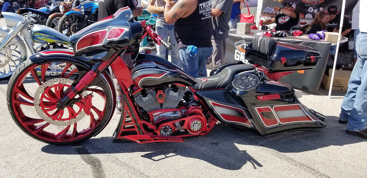 The bloodline chin spoiler is available for both 26 and 30 in wheels with and without crash bar. Available for all touring models 09 and up. Allow up to 2 weeks from purchase date to ship. The bloodline chin spoiler is available for both 26 and 30 in wheels with and without crash bar. Available for all touring models 09 and up. Allow up to 2 weeks from purchase date to ship.