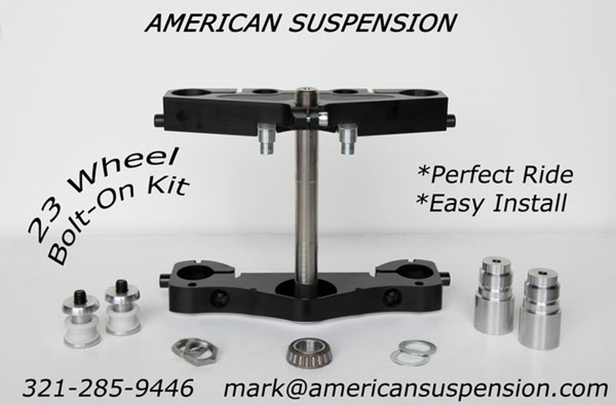 Triple Tree for 23" Wheels or wide 21 This is the best kit for 2014 and up - by a longshot 1-includes external bumpers - skip expensive and time consuming fork dissasembly 2-one piece stem. Ride safe and ride secure. 3- get the best geometry possible from the suspension experts - American Suspension