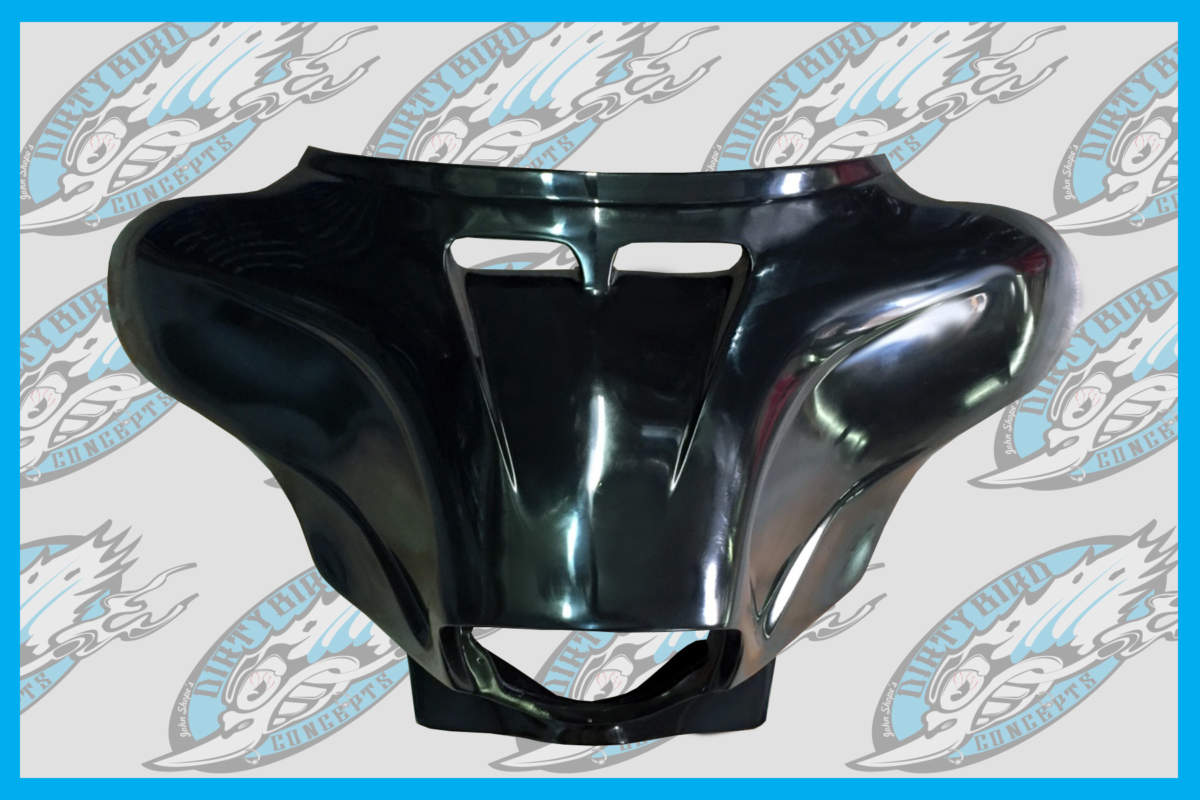 Raked out your bagger to a 23″, 26″, 30″ or 21″ fat and you know you cant be rolling on that stock ugly fairing…. Dont worry John Shope has got you covered with our bolt on or weld on bagger fairing. This masterpiece is a direct bolt on to the factory inner fairing that fits like a glove. Re-engineered and made with our superior NYB polymer blends so you know the fit and finish is perfect like OEM factory and tough as hell. With your raked bike and our Harley Davidson fairing the headlight will be pointing in the right direction. Level 2 Installation. See below for more details.