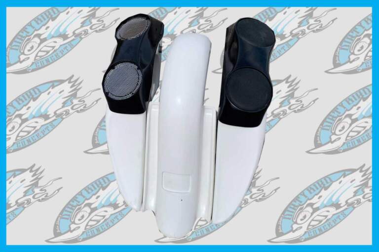 Newest to the streets but same street sweeping design from our famous Street Sweeper Ass End & Loud Street Sweeper now equipped with audio to house a speaker up to 10″ with more air space for a bigger boom! 10″ ring made into the bags. 6″ of mounting depth 1.2 cubic feet without drop rails. Bags are 9 1/4 wide. This Harley saddlebags set comes with your left and right 7.5″ down and 14″ back bags with a matching rear fender with superior fit and reliability. 1708 high strength weave, 3 thick layups crazy strong no bracing and with 5 layups on speaker ring. All your stock factory hardware, lids and seat will transfer over to this bad ass set. You will not be disappointed. Level 2 Installation. See below for more details.