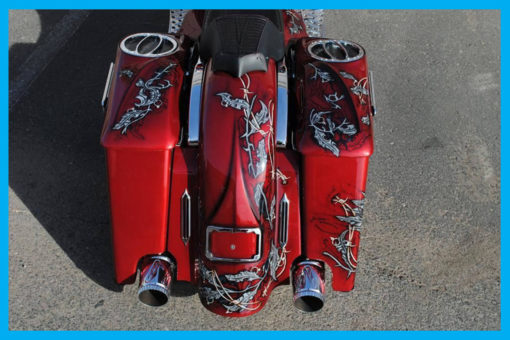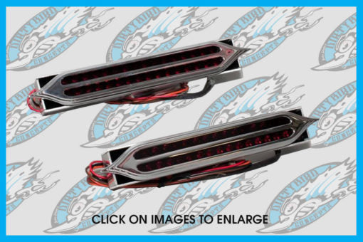 Be seen with our super bright LED lights with 3 functions. Measurements: 1″ wide by 6 & 3/4″ from tip to tip & less than 1/4″ thick. Perfect size for filler panels and saddlebags. The lights do not require load equalizer if using stock Harley front blinkers. Minimal wiring but we do recommend you have a test light and battery to test each light for functions. The lenses are flush with billet frame. Super high quality one of a kind. Level 2 installation. Please see below for more details.