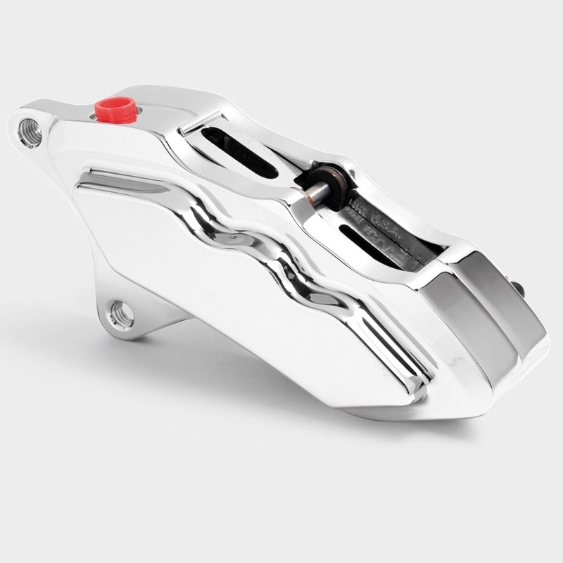 Differential bore technology is employed with our 6 piston product line. For customers who want the ultimate in performance and the looks to match, this is the brake caliper of choice. As always, our calipers don't feature our logo to insure you that smooth, clean, custom look. All calipers come complete with brake pads, mounting hardware, 10mm banjo bolt and crush washers.
