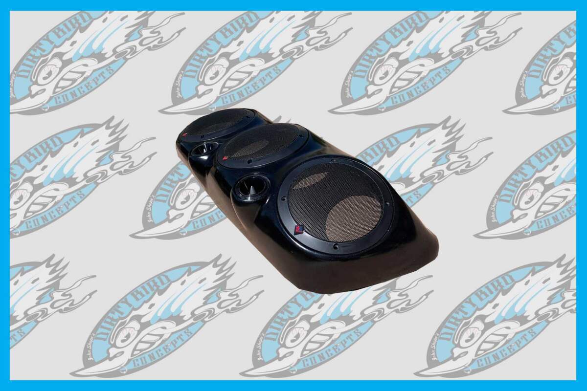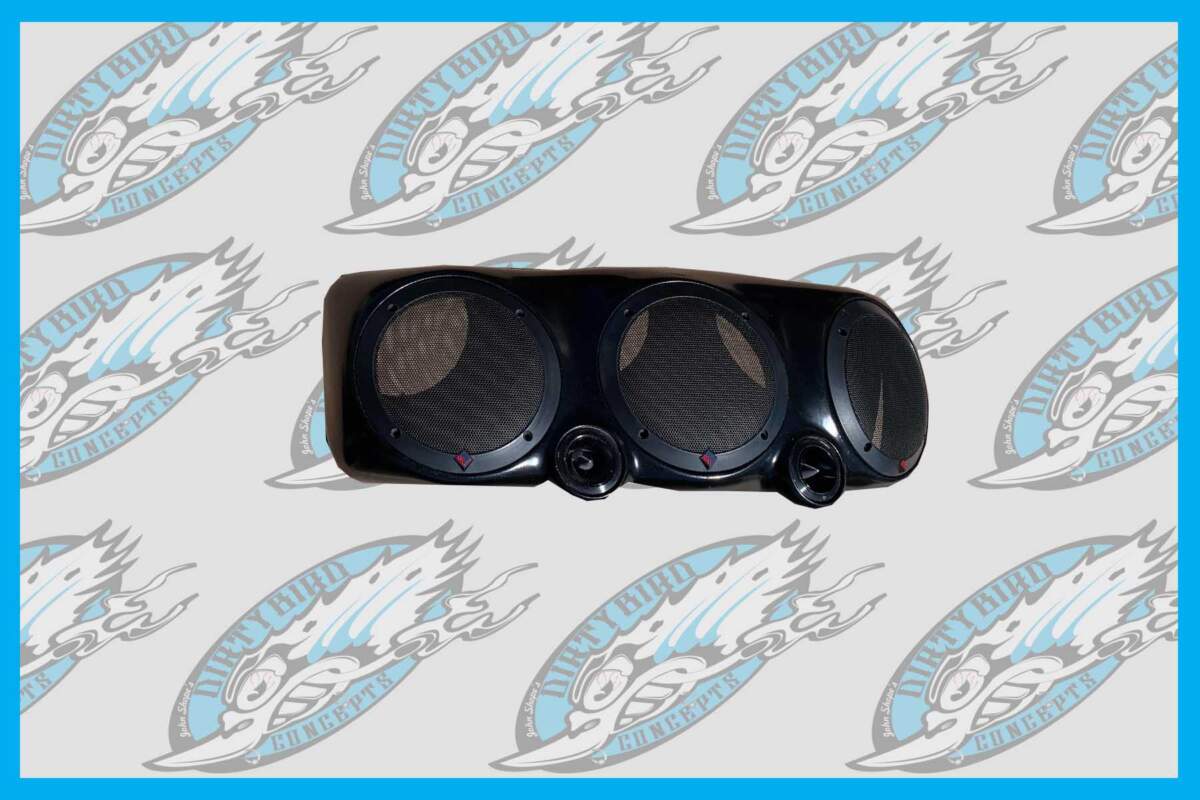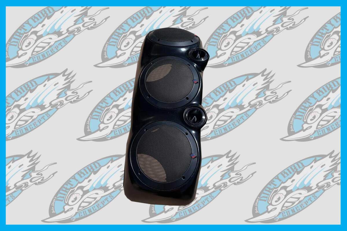 The more the merrier right? Well John Shope has re invented the wheel with these new triple 6.5″ speaker saddlebag lids for your bagger. You can add a dual tweeter set up or not if you like. Fits like a glove on saddlebags that accepts OEM factory lids. Made from our famous NYB polymer so you know its super tough with superior fitment. Just mock these bad boys to your bike and then send them off to paint. It really is just that easy. Level 2 Installation. See below for more details.