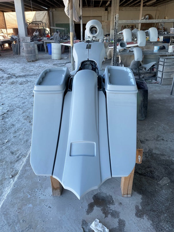 Includes bags with molded side covers, fender, lids, drop rail with battery tray, lid trim rings, and screens. 2 cubic feet of air space!