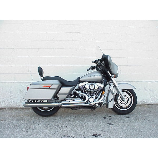 - The length of the system with the muffler is too short to use with Extended bag. We offer extended length muffler for bikes that have stretch bags. We will send a special order form to fill out.