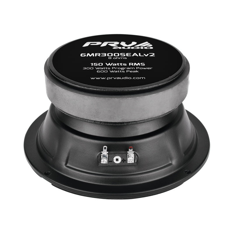 The 6MR300SEAL v2 has a sealed basket design, permitting it to reside in the same space as larger woofers without causing distortion to the Mid Bass driver. The large magnet assembly is attached to the sturdy reinforced steel enclosed frame completes the 6MR300SEAL v2 to ensure a solid support structure, for long lasting play in most any environment.