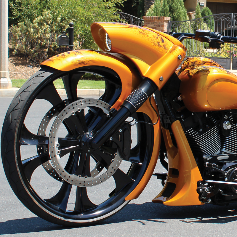 It is the customer responsibility to confirm that they have adequate space between chin spoiler and fender. This can be done easily by checking measurement requirements below.