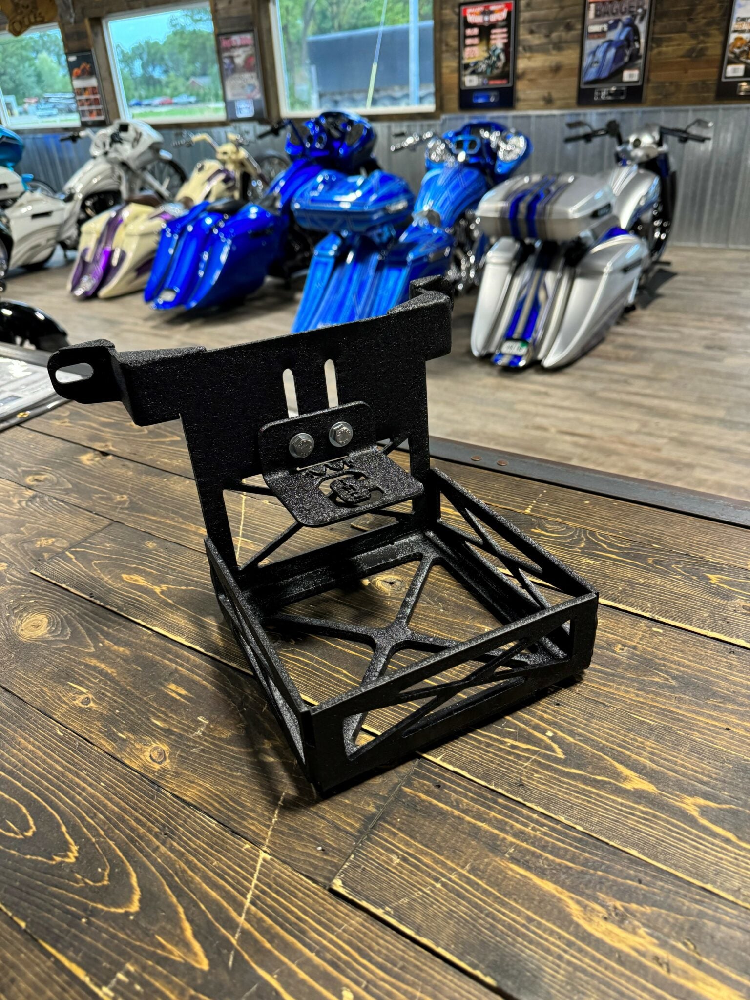 Introducing a clean way to hide / locate that second battery you got in your bagger, To power all those amps you got for your audio build. The Under Fender Battery Box is built to hold a stock touring Harley battery but will fit any battery within 7.25″ length x 7″ width x 6″ height.