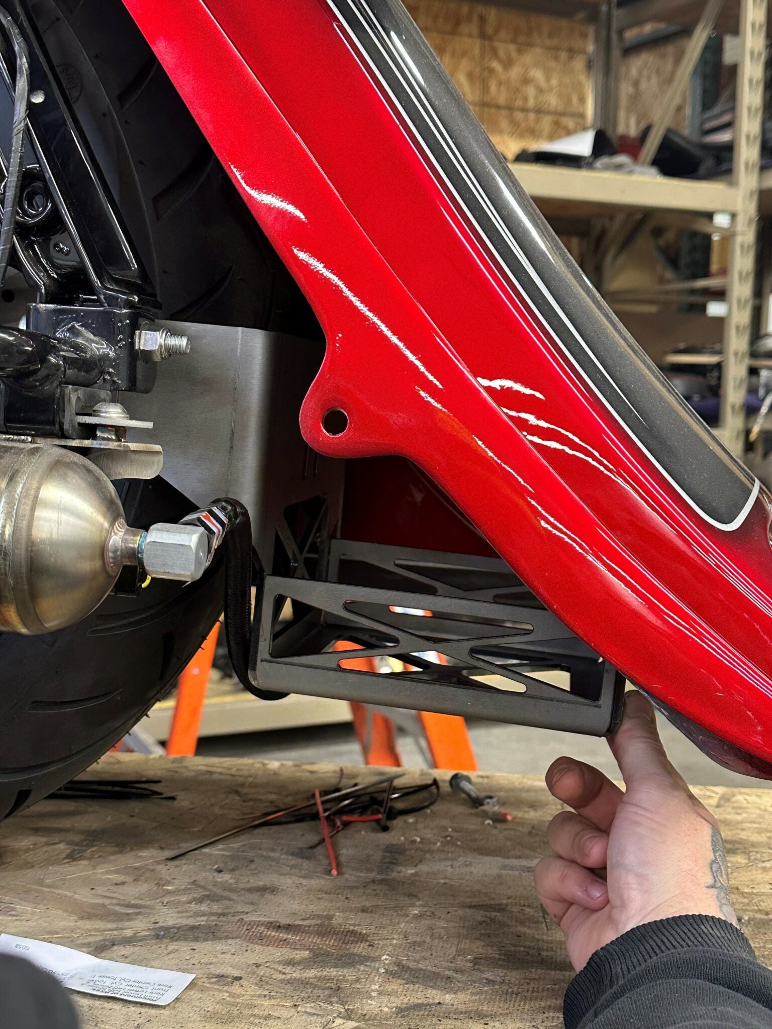 - For Years 99-08 touring models you will need to trim the mounting tabs down to the slots to clearance the nylock nut mounting your bag rail to the strut. ( View photos to see cut line )