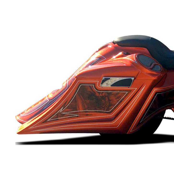 The bags are 6 inches lower than stock bags and have great steer ability over 8 inch bags. You won’t find a longer, better looking set of bags on the market. Speed By Design uses nothing but the highest quality products throughout our whole design and build process. We use high grade vinyl ester resin which equals less shrinking and longer cure times but much straighter parts. Not only that, the higher quality materials provides greater longevity in the life of the part. Fact is we spend much more time tooling them and spend more money building them. So it saves you time and labor on your build. You will be truly amazed at the quality of finish, the straightness, and the perfection of the body lines. Get your Long Baller Rear End today!