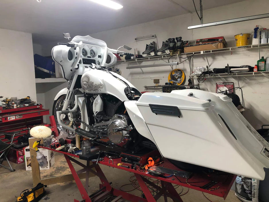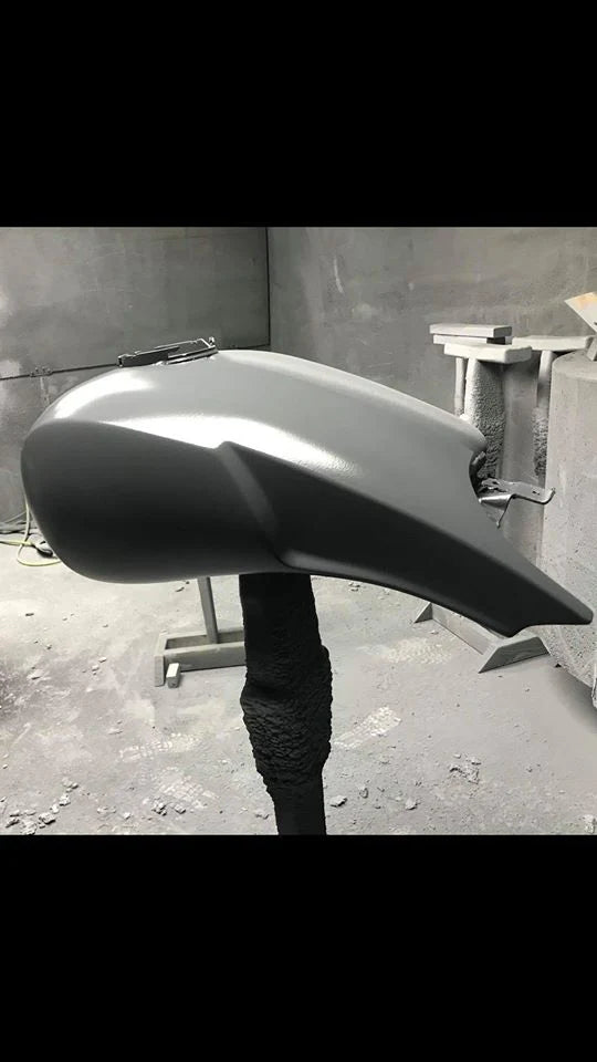 All parts are vacuum infused with a high-end resin. The tank covers will need to be bonded onto your current tank using epoxy, then you will have to use short strain filler to fill in the gaps all around the tank covers. Tank covers are made longer so our customers can cut the tank covers how they want them to fit with our side covers. Please allow 2-3 weeks when your order is placed, all of our products are made by hand. These are not easy to do, they would have to be taken to a body shop or a bike builder that knows what they are doing.